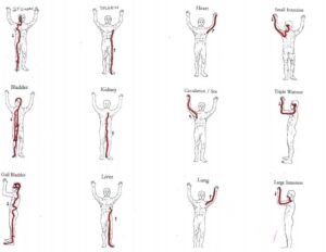 The body has 12 primary meridians and 2 Central Vessel Meridians. Each of the 12 Main Meridians corresponds to an organ system, but remember: when we say ‘organ’ here, we mean the energetic function as well as the physical organ.